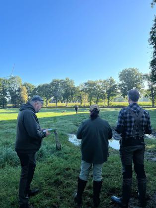 Am 06.09.2025 trafen wir uns gegen 7.30 Uhr am Brauhaus in Bagband. Nachdem alle Hundeführer mit Ihren Vierbeinern, alle Richter und Richteranwärter, die Revierführer und interessierten Zuschauer anwesend waren, begrüßte Prüfungsleiter Tido Bent alle herzlich im Namen er LG Waterkant. Nachdem „der Schriftkram“ erledigt war, wurde im Beisein aller eine Richterbesprechung durchgeführt. Dabei wurde noch einmal explizit auf das Punktesystem und die Arbeit an der lebenden Ente angesprochen. Nachdem ein Gruppenfoto gemacht wurde, brachen die beiden Gruppen bei sonnigem Wetter in die Reviere Bagband und Aurich-Oldendorf auf. Gruppe 1 begann am Wasser, während Gruppe 2 mit der Feldarbeit anfing.