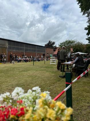 Am 24.08.2025 fand unsere diesjährige Sommer-Zuchtschau mit anschließender Deckrüden-Vorstellung in Moorlage statt. Vormittags um 10.00 Uhr begann das Programm mit der Zuchtschau in 2 Ringen. Nach kurzer Begrüßung durch unsere Zuchtwartin Dr. Astrid Sulzer wurden die Hunde in 2 Ringen vorgestellt. Bei bestem Wetter konnten sich die Gespanne von ihrer besten Seite den Zuschauern und Richtern zeigen. Nach jedem Hund wurde für die Besucher und Hundeführer die Bewertung vorgetragen und noch einmal im Ring anschaulich erklärt. Nach einer kurzen Stärkung gegen Mittag am Torfgrill und dem Getränke-Pavillon wurden die noch verbliebenen Hund vorgestellt. Während der Erstellung der Zeugnisse fand eine Deckrüden-Vorstellung für alle Interessierten statt. Hier konnte sich ein Bild über die aktuelle Zuchtbasis der Deckrüden gemacht werden. Die ausführliche Beschreibung der Deckrüden und deren momentanen Zuchtwerte kommentierte Johann Stamm für die Besucher.