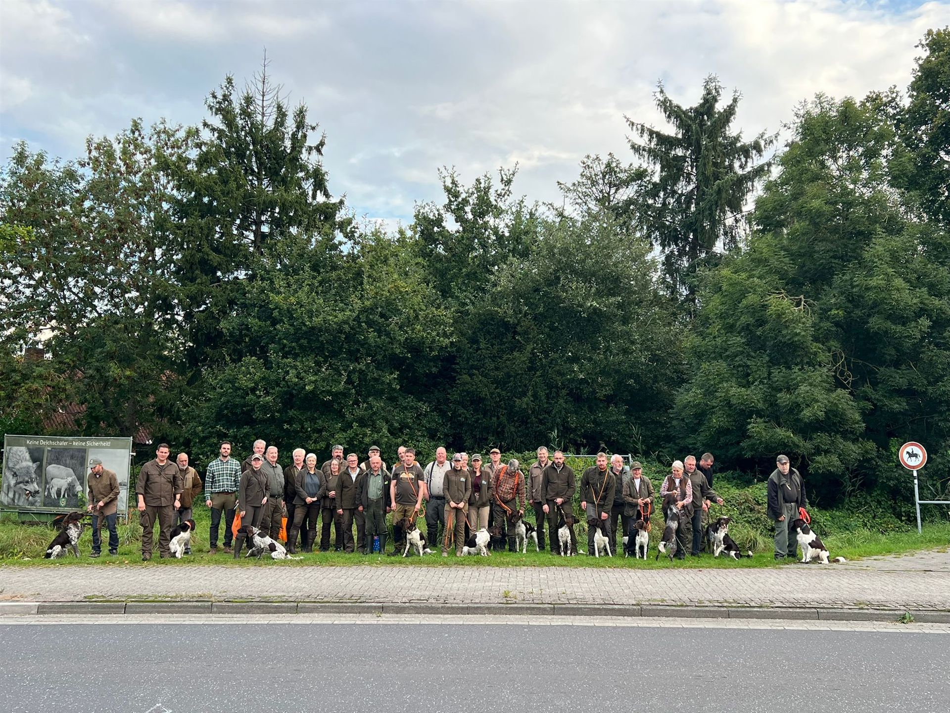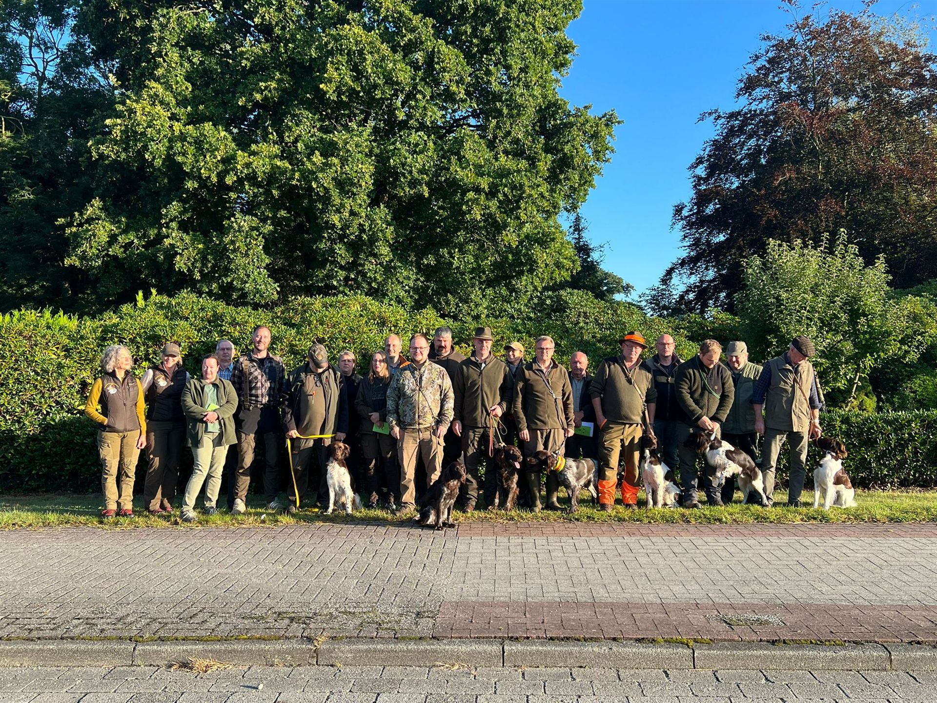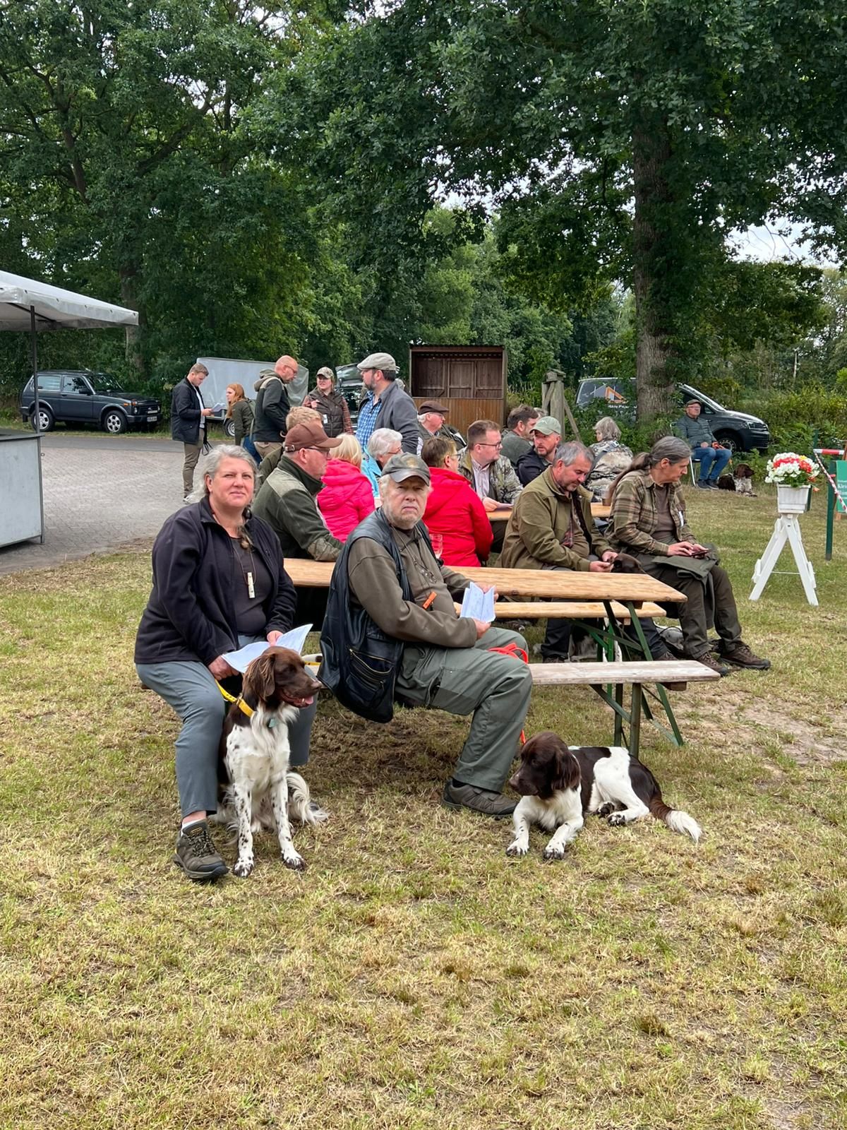 Am 06.09.2025 trafen wir uns gegen 7.30 Uhr am Brauhaus in Bagband. Nachdem alle Hundeführer mit Ihren Vierbeinern, alle Richter und Richteranwärter, die Revierführer und interessierten Zuschauer anwesend waren, begrüßte Prüfungsleiter Tido Bent alle herzlich im Namen er LG Waterkant. Nachdem „der Schriftkram“ erledigt war, wurde im Beisein aller eine Richterbesprechung durchgeführt. Dabei wurde noch einmal explizit auf das Punktesystem und die Arbeit an der lebenden Ente angesprochen. Nachdem ein Gruppenfoto gemacht wurde, brachen die beiden Gruppen bei sonnigem Wetter in die Reviere Bagband und Aurich-Oldendorf auf. Gruppe 1 begann am Wasser, während Gruppe 2 mit der Feldarbeit anfing.