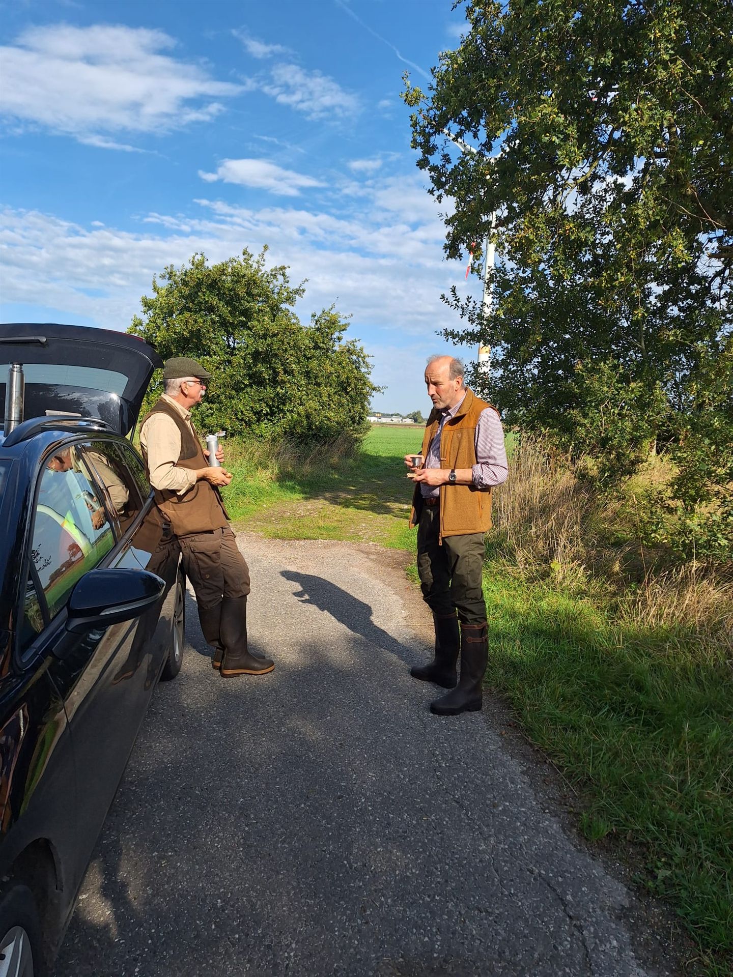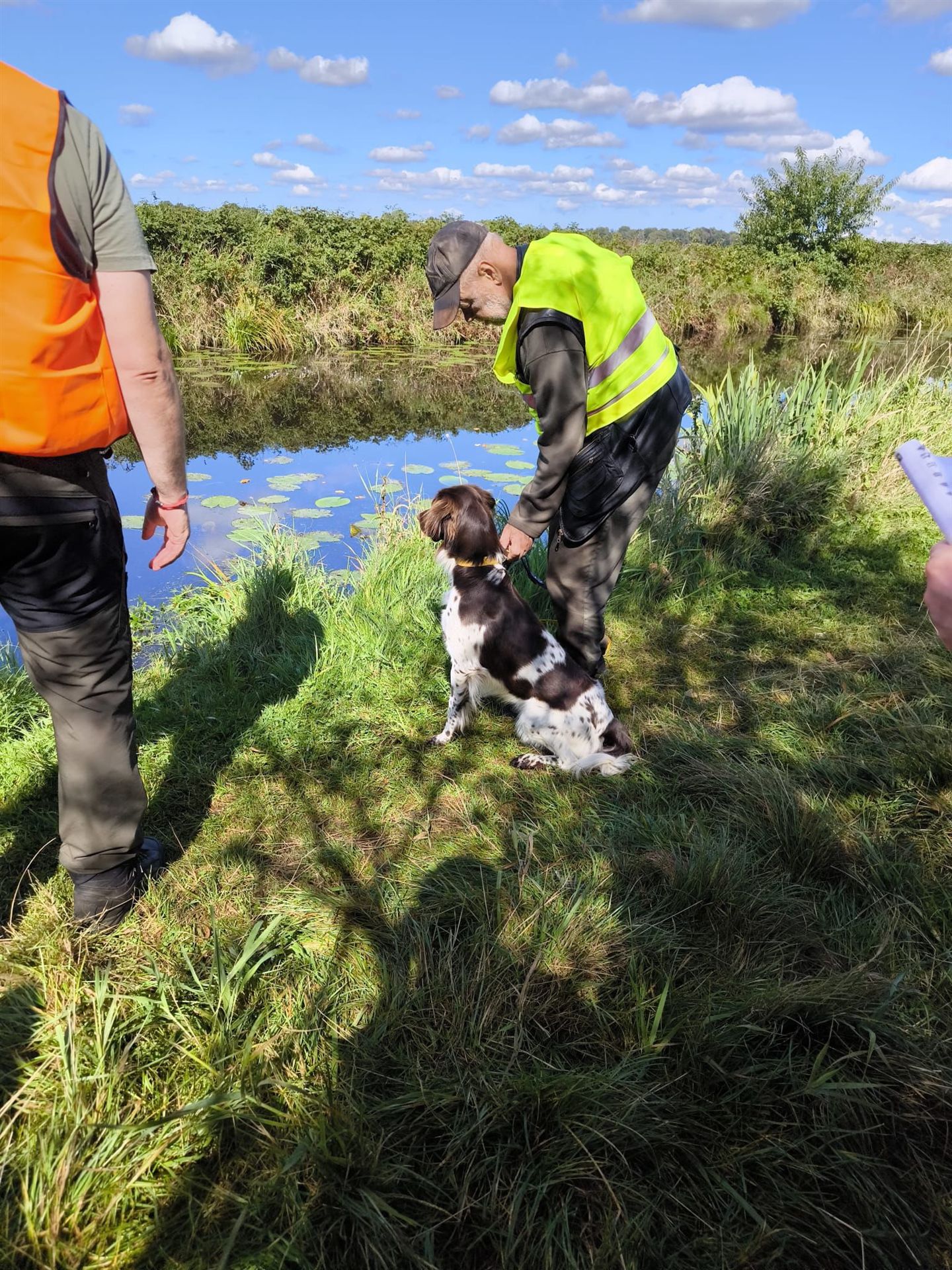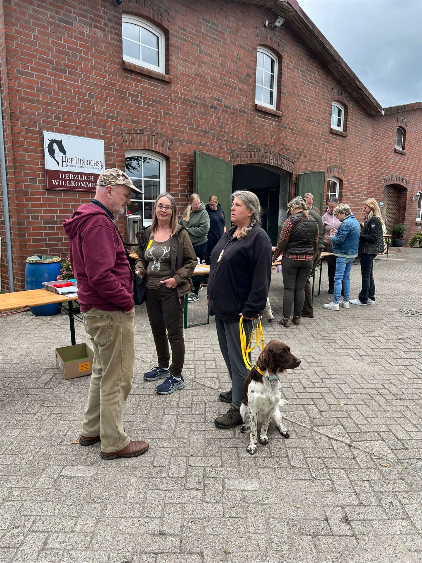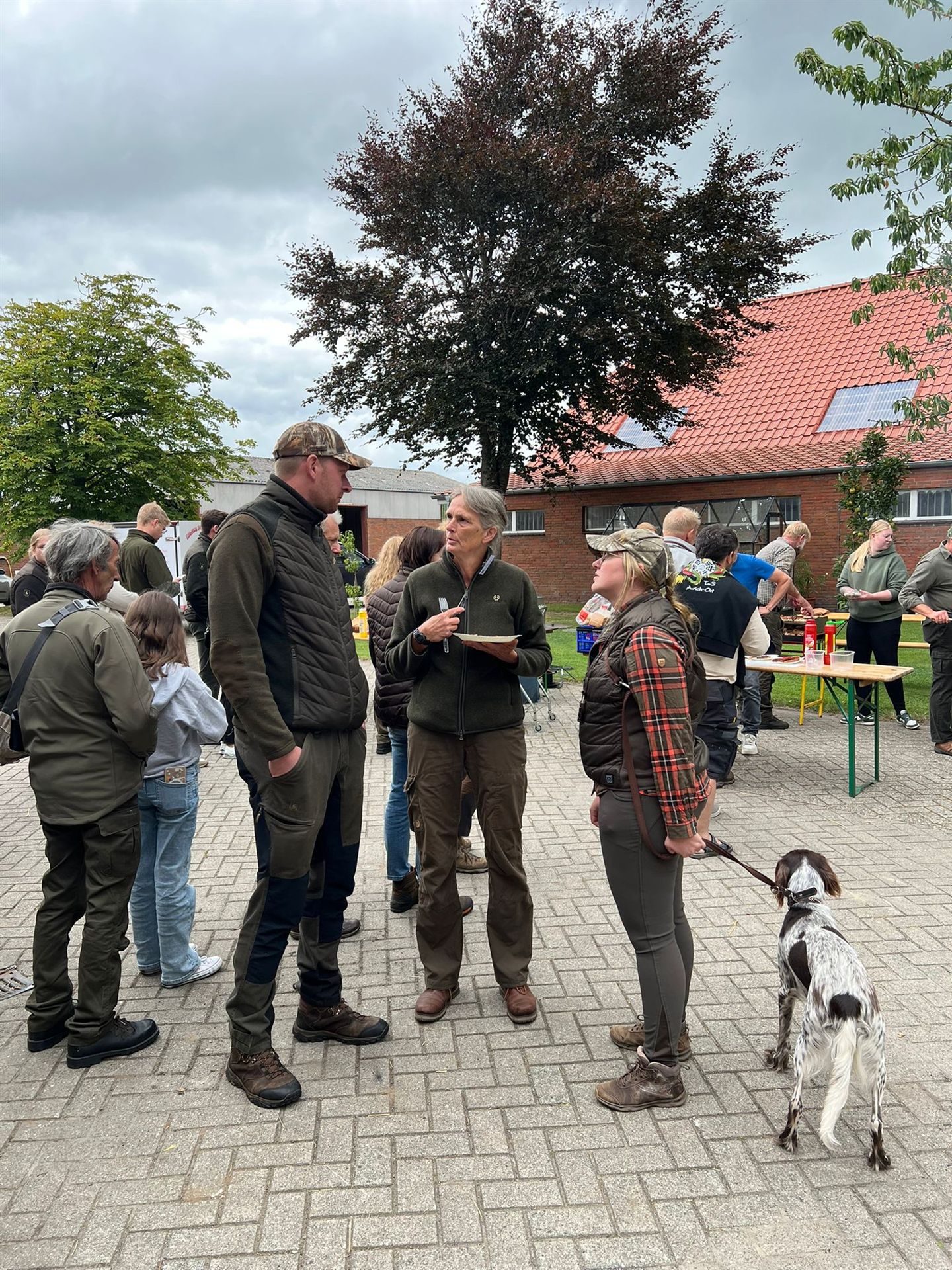Am 06.09.2025 trafen wir uns gegen 7.30 Uhr am Brauhaus in Bagband. Nachdem alle Hundeführer mit Ihren Vierbeinern, alle Richter und Richteranwärter, die Revierführer und interessierten Zuschauer anwesend waren, begrüßte Prüfungsleiter Tido Bent alle herzlich im Namen er LG Waterkant. Nachdem „der Schriftkram“ erledigt war, wurde im Beisein aller eine Richterbesprechung durchgeführt. Dabei wurde noch einmal explizit auf das Punktesystem und die Arbeit an der lebenden Ente angesprochen. Nachdem ein Gruppenfoto gemacht wurde, brachen die beiden Gruppen bei sonnigem Wetter in die Reviere Bagband und Aurich-Oldendorf auf. Gruppe 1 begann am Wasser, während Gruppe 2 mit der Feldarbeit anfing.