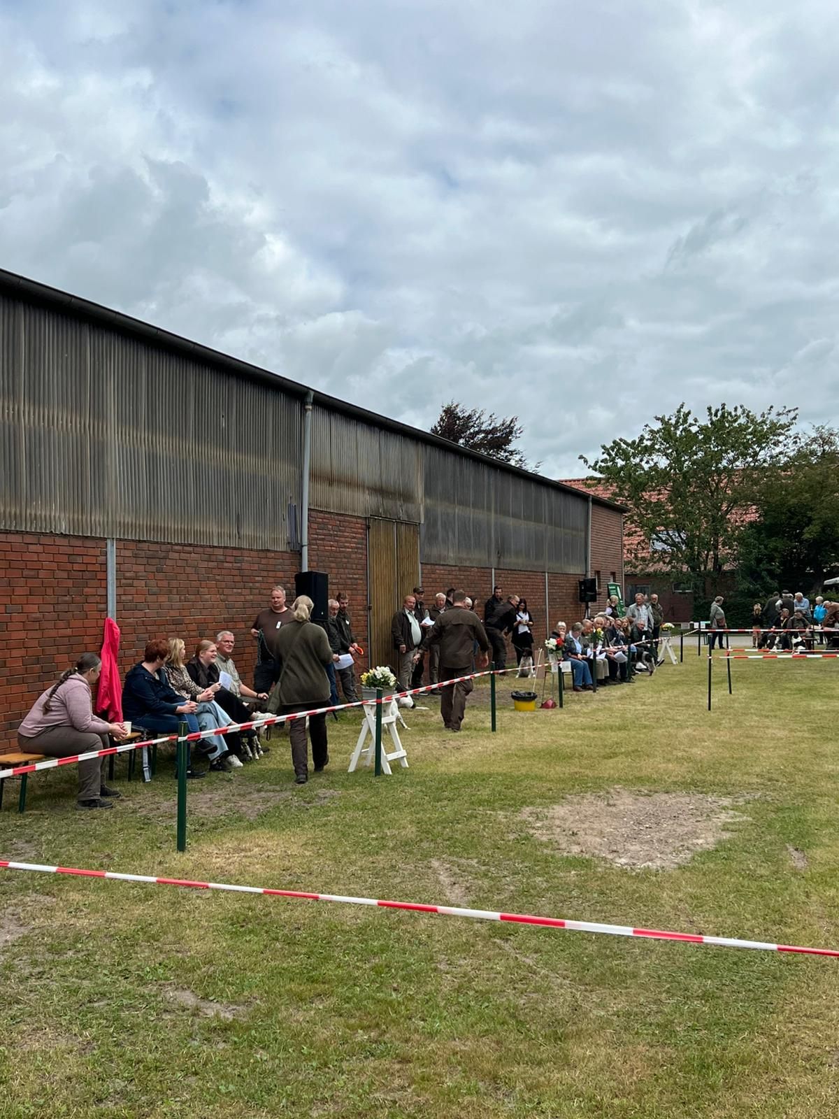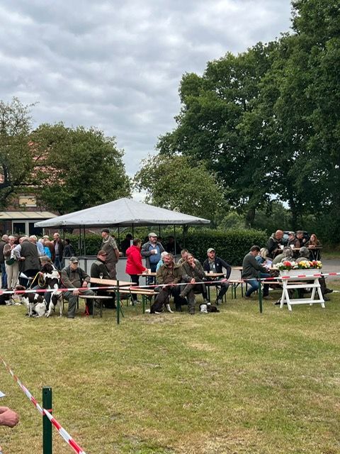 Am 24.08.2025 fand unsere diesjährige Sommer-Zuchtschau mit anschließender Deckrüden-Vorstellung in Moorlage statt. Vormittags um 10.00 Uhr begann das Programm mit der Zuchtschau in 2 Ringen. Nach kurzer Begrüßung durch unsere Zuchtwartin Dr. Astrid Sulzer wurden die Hunde in 2 Ringen vorgestellt. Bei bestem Wetter konnten sich die Gespanne von ihrer besten Seite den Zuschauern und Richtern zeigen. Nach jedem Hund wurde für die Besucher und Hundeführer die Bewertung vorgetragen und noch einmal im Ring anschaulich erklärt. Nach einer kurzen Stärkung gegen Mittag am Torfgrill und dem Getränke-Pavillon wurden die noch verbliebenen Hund vorgestellt. Während der Erstellung der Zeugnisse fand eine Deckrüden-Vorstellung für alle Interessierten statt. Hier konnte sich ein Bild über die aktuelle Zuchtbasis der Deckrüden gemacht werden. Die ausführliche Beschreibung der Deckrüden und deren momentanen Zuchtwerte kommentierte Johann Stamm für die Besucher.