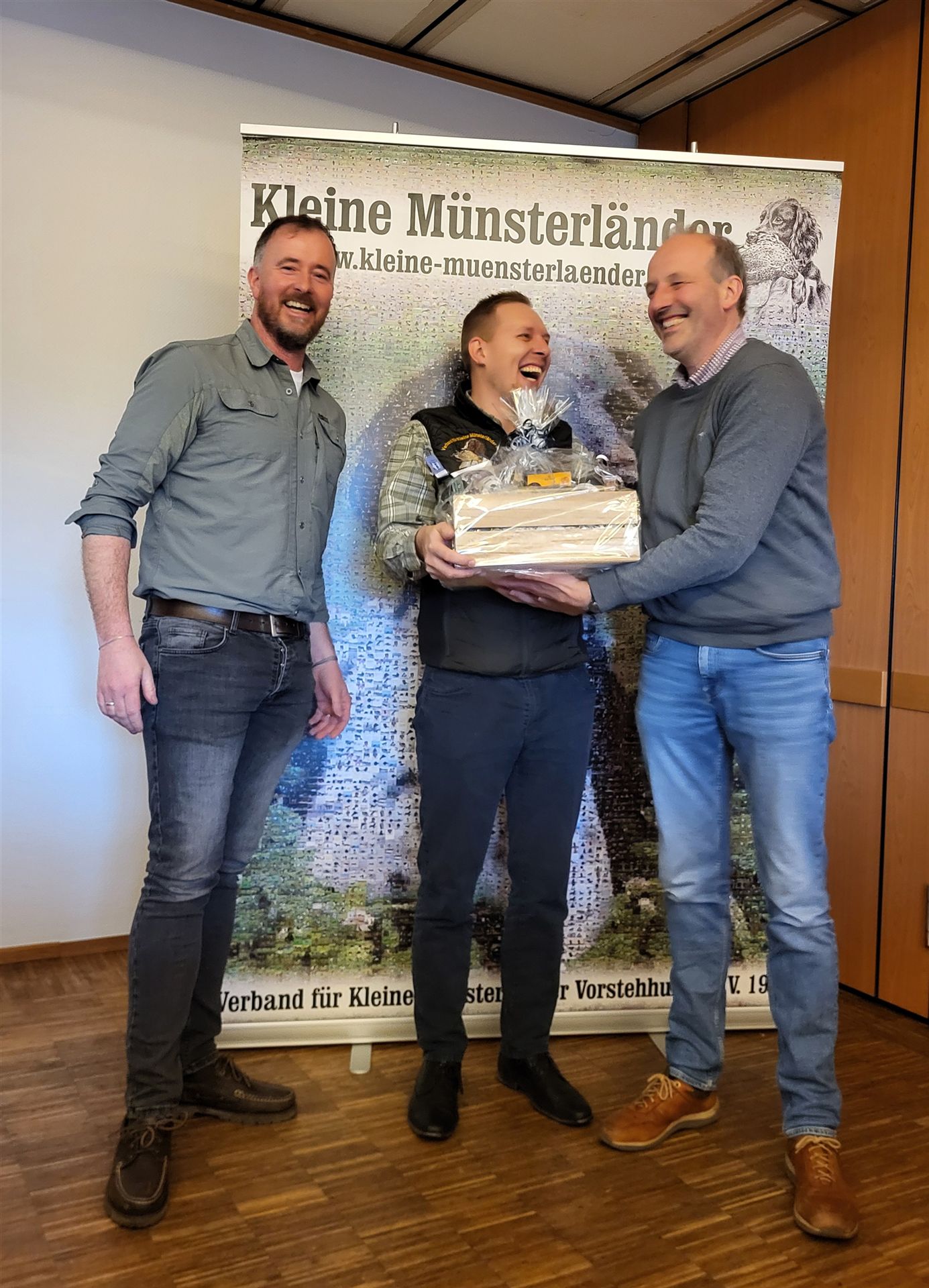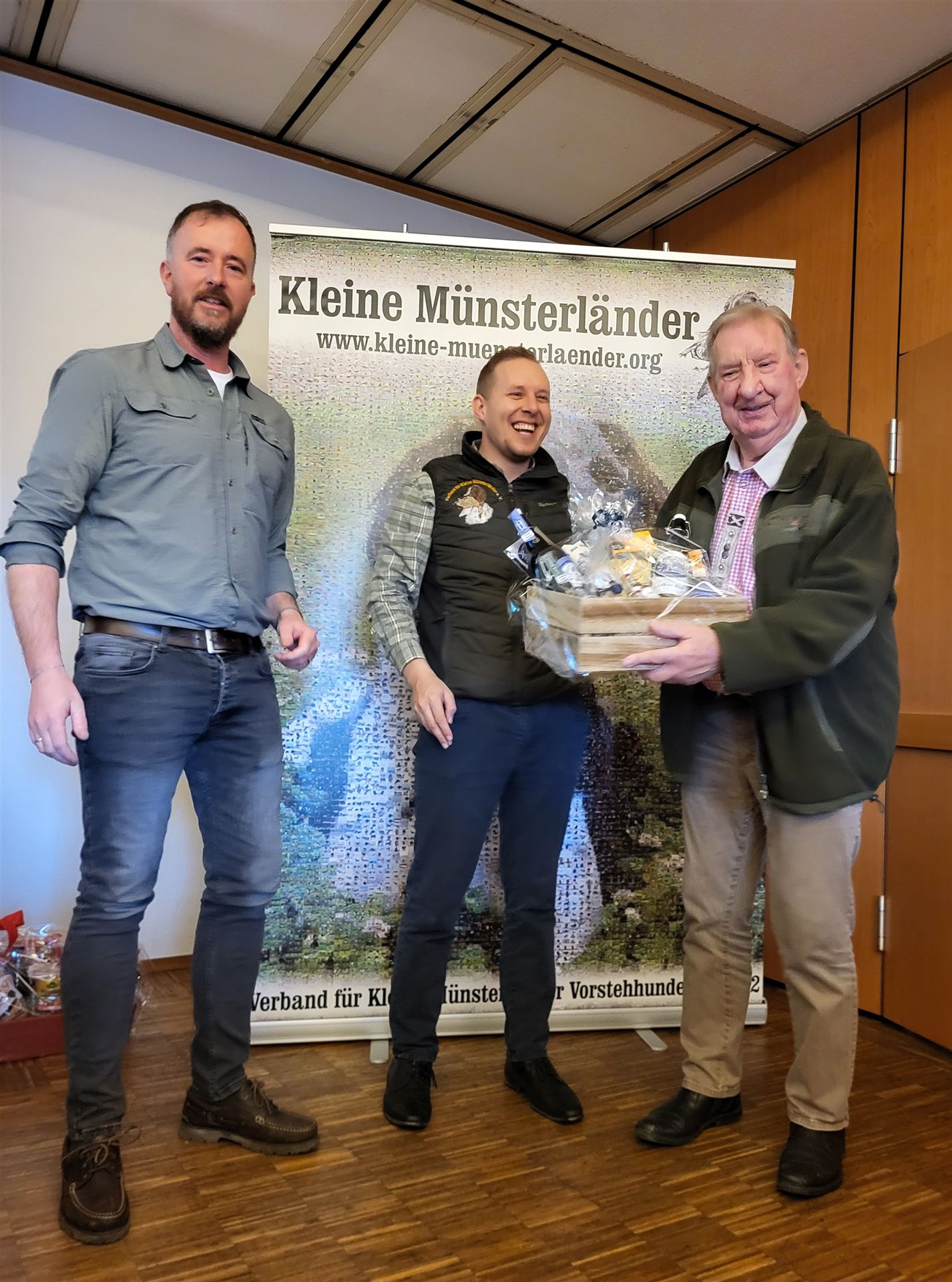Er berichtete von den Prüfungen und Zuchtschauen aus dem Jahr 2024. Dabei verlieh er den Erstplatzierten der VJP, HZP und der VGP aus 2024 einen Wanderpokal und eine Schieferplatte mit Gravur als „Suchensieger 2024“.